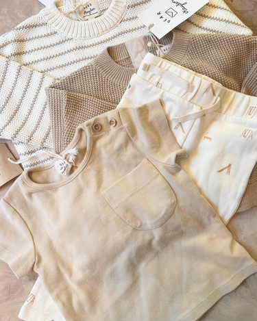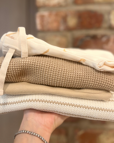 Our mystery bundles are our best offer and a chance to score beautiful Dear Hayden items at an amazing price. The exact pieces included will be a surprise. Bundles may include past season pieces, samples, one-off designs that never went into production, and more. Perfect for upcoming baby showers, birthday gifts, or building your child's wardrobe.