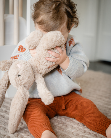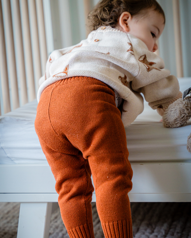 These super soft knit joggers are made of 100% Pima Cotton from Peru. They feature an elastic waist and faux knit drawstrings for a sweet detail. Your little one will be comfortable and cozy all day long in these precious pants. Pair them with our Organic Cotton Snail Knit Sweater in Oatmeal or Pearl Blue or our Organic Cotton Fox Knit Sweater in Mocha or Pale Pink.