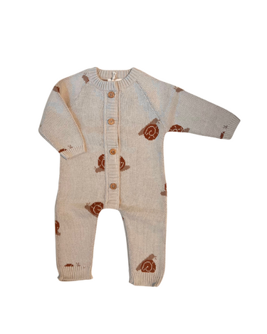 Our organic snail romper is a truly special piece for the new little one in your life. It makes a perfect gift or if you are a new parent, you will love the convenience that the Magnetic Buttons offer. This organic cotton knit romper features the sweetest snail pattern with rib details at the cuffs and center placket. The romper features our signature Magnetic Buttons from the neck down to the crotch for struggle-free changing. Each button has a hidden, sewn-in magnet underneath!