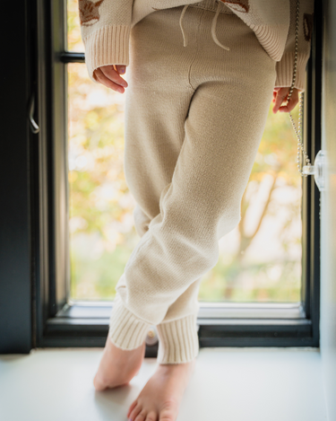 These super soft knit joggers are made of 100% Pima Cotton from Peru. They feature an elastic waist and faux knit drawstrings for a sweet detail. Your little one will be comfortable and cozy all day long in these precious pants. Pair them with our Organic Cotton Snai Knit Sweater in Oatmeal or Pearl Blue or our Organic Cotton Fox Knit Sweater in Mocha or Pale Pink. They also look adorable with our Pima Cotton Waffle Knit Hoody in Oatmeal.
